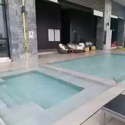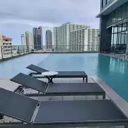 💓The 10th-floor swimming pool has a modern and luxurious feel, and there's a restaurant right next to the pool.