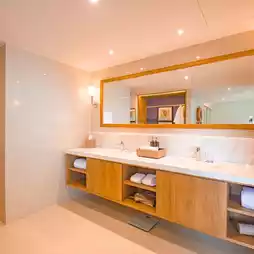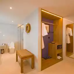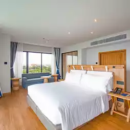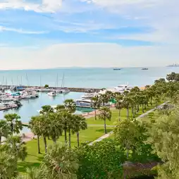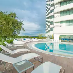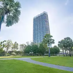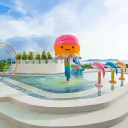 Ocean Marina Resort Pattaya Jomtien, accommodation next to a yacht marina by the sea, good atmosphere, beautiful photo corners, large swimming pool with a great view, a water park zone for children to play, a bar where you can order drinks and a fitness center, luxuriously decorated rooms with a long balcony, Afternoon Tea set with a beautiful view is very chill. The accommodation is close to the beach, you can walk there.