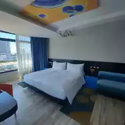 What we like and are impressed with this stay is that all guests can use the snack service in the lounge all day long. The snacks are cakes, sandwiches, general break snacks, tea, coffee and fruit juice. In this zone, it is self-service. We think this is very good because you can eat to relieve hunger. The decoration style of the hotel rooms is mostly blue and white, which is cool and comfortable to the eyes.