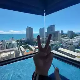 I remember when I had the chance to go to Pattaya this time, we got a voucher for accommodation at a very good price. This is a 4-star luxury hotel. The hotel is located in North Pattaya, next to many tourist attractions. It is also next to Art in Paradise Pattaya shopping mall. There are also many famous hotels in the surrounding area. You can walk to the beach because it is not far from the accommodation.