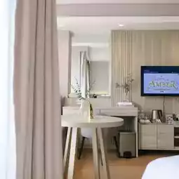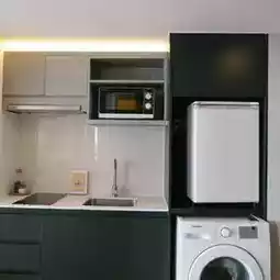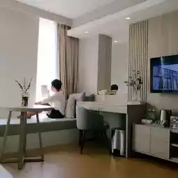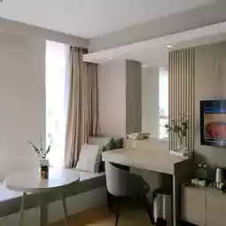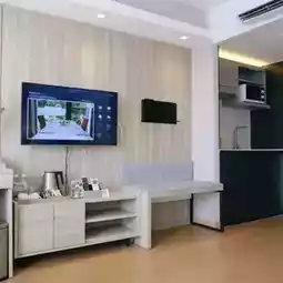 A lovely accommodation in Central Pattaya, just 2 kilometers from the beach. Aster Hotel and Residence Pattaya. Beautiful, clean rooms, good size, complete facilities. The interior is fully decorated with a sitting area, mini kitchen set, electric stove, microwave, washing machine, TV, refrigerator, sitting area, work desk.