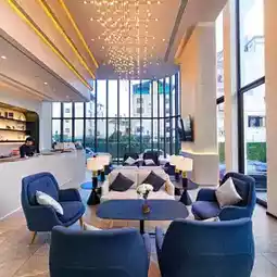 Another highlight here is the rooftop on the 24th floor, which is the most popular check-in point of the hotel. There is a swimming pool area with a clean view that looks beautiful and clean, where you can take beautiful pictures, or a cafe area that gives a chic beach vibe, where you can sit and chill, hang out, sip cocktails, watch the sunset, and enjoy the sea view. The atmosphere is great, or if you come to sit indoors, there is a corner for taking pictures so fast that you won't be able to keep up.