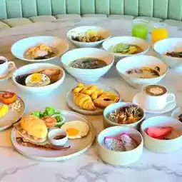 🥐 Breakfast: Full buffet style and also an A la Carte menu that can be ordered without limits, including kimchi fried rice, rice soup, omelette, shrimp wonton soup, stewed beef noodles, American Breakfast set, teriyaki chicken rice, and a line of self-serve food, including bakery, salad, and fruit.