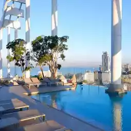 The highlight is the rooftop with a sea view + a swimming pool with an excellent design ๐โ๏ธ You can see a 360-degree view. The atmosphere is very good. Whether it's in the morning, afternoon or evening, it's great for many moods. I recommend coming in the evening. Sunset is very romantic. Or in the morning, sunrise, the sky is lovely โ