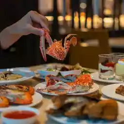 Including the restaurant that we used, International & Seafood Buffet, I must say that the food line here is very large and varied. The seafood is very fresh. It's very good. And what can't be left out is the breakfast line. I must say that the breakfast here is very standard. Including new stations such as soy milk, custard bread, egg station, noodle station. Full of deliciousness, complete happiness, get full relaxation. Plus, it's easy to travel. Near tourist attractions, give a million out of 100 points.