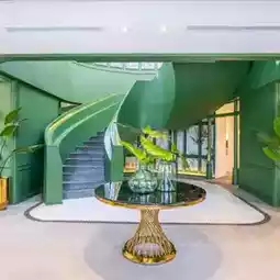 ตัวร้านตกแต่งด้วยสไตล์คล้ายๆอาคารเรือนกระจกที่รับแสงธรรมชาติจากภายนอก ระหว่างที่นั่งทานอาหารด้านในก็สามารถมองเห็นสวนและน้ำตกที่อยู่ด้านนอกได้ ทำให้รู้สึกเหมือนนั่งทานอาหารกลางสวนเลย ซึ่งแรงบันดาลใจในการออกแบบก็มาจากชื่อร้านนั้นเอง Lucus เป็นภาษาละติน ที่แปลว่าสวนขนาดเล็ก