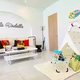 This time, we came with a gang of friends and stayed in the 𝐏𝐚𝐥𝐥𝐚𝐝𝐢𝐮𝐦 𝐓𝐰𝐨-𝐁𝐞𝐝𝐫𝐨𝐨𝐦 𝐏𝐨𝐨𝐥 𝐀𝐜𝐜𝐞𝐬𝐬 room. It has 2 floors, 2 bedrooms, 2 bathrooms, can accommodate 4 people, with a large living room decorated in white tones, contrasting with bright colors, suitable for families or party groups. The room is next to the swimming pool. Just open the door and jump into the water.
