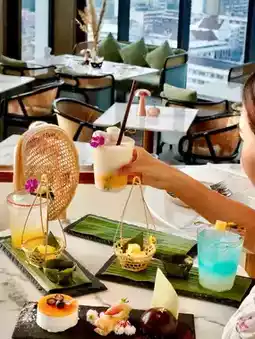 Go down 1 floor, 23rd floor is Fundamentals restaurant floor, which serves breakfast until dinner, including a cafe with snacks and coffee. We can sit and have afternoon tea in the afternoon. When we went, they served a special set during Songkran, April - May. It was Plango sour in a yellow glass and Mahothon devi in a blue glass. It was delicious and refreshing, very good together.