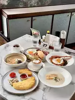In the evening, I must say that it is very suitable for dinner. The atmosphere is good, the food is delicious, premium. There is also a special menu during the time we went, which is crab curry noodles. As for breakfast, it is an A La Carte buffet, freshly made, plate by plate. We can choose to order any menu and eat as much as we want within 1 hour. There are also snacks in the buffet line, such as vegetable salad, cakes, various snacks, as well as drinks and fruits. You can pick them up and eat them right away.