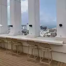 I really like this place. In the evening, it's chill. The sun isn't hot. I can watch the sun. See the city and the sea in the distance. Anyone staying here should come up and see it.