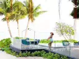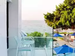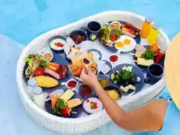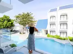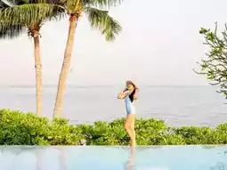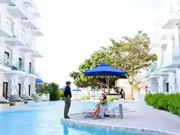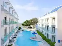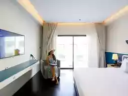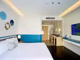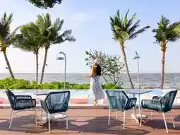 🌴This trip, Aom would like to take you to relax and chill in a medium-sized accommodation with a great feel. The accommodation is decorated in blue and white tones, giving a light Santorini feel. There are many beautiful photo spots, especially the swimming pool, which has 3 pools: a large pool that stretches to the end of the accommodation building, a small pool for children, and a pool in front of the beach bar. Each pool is very fun to take photos of. There is also a relaxing corner by the sea, watching the sunset while sipping a cold drink. It's so awesome.