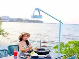 👉Loud Beach Bar The beach bar by the sea serves both Afternoon Tea and fusion Thai food. It tastes good. There are many menus to choose from. For dinner, we left our stomachs here. We chose to eat a set of pork pan. The set includes pork, beef, chicken, and vegetables. There are 3 types of dipping sauces. The pork is marinated and very soft. 2 people can eat and be full.