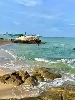 🤝 So if you miss the sea, you must go to Pattaya Beach and Wong Amat Beach, one of the beaches that has been well-known in Pattaya for a long time. It is a quiet and very private beach, perfect for chilling out by the sea, swimming in the water, or listening to the sound of waves hitting the shore. It is another place where you can fully relax. Let's go to Chonburi Province.