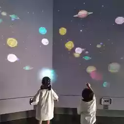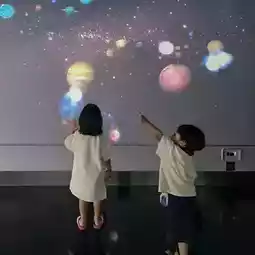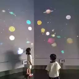 Join the fun adventure by moving your hands to complete missions on the 88-square-meter space-themed interactive wall.