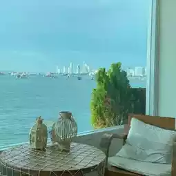 🏚 A secret cafe hidden in the middle of Walking Street Pattaya pubs and bars. The shop is decorated in a homey style, brown, cream, and white, contrasting with the blue sea. This mood and tone are very touching. The atmosphere is so chill.