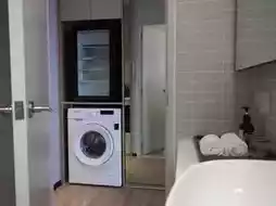 ▪️The rooms here are in white and blue tones, giving a relaxing feeling. The rooms are also fully equipped like being at home, with a washing machine, refrigerator, and microwave.