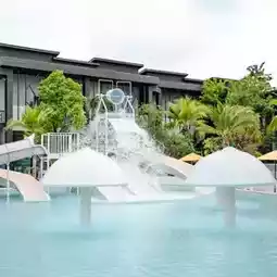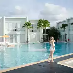 ✨This is the 3rd time we’ve been here, and we were just as impressed as ever. We love everything here, both the atmosphere and the shady green trees along the walkway. Here, you can call a buggy to pick you up and drop you off at any time. There are also scooters to borrow to drive around the accommodation for free. The common area is also complete, amazing, with a fitness center, sauna, and a large communal swimming pool. Create content in a cool way with the Castaway zone that has gathered both a cafe, a restaurant, a pool bar, and there are many SUP boards and rides to borrow and play!! Come here and have fun all day long for sure☀️
