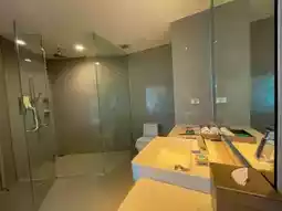 🛌 The room is quite spacious. The bed and pillows are soft and comfortable to sleep in. There is a work desk at the head of the bed, 2 sofa chairs and a table, facing the corner glass of the room, with a view outside the room.