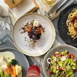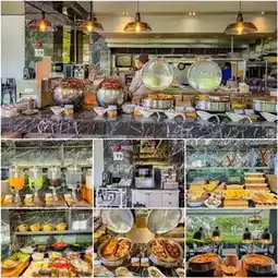 🍳 October Sky is the hotel's restaurant. The restaurant is decorated in a contemporary and spacious style. It offers all-day dining on the ground floor with an open kitchen. We had breakfast here. It was a buffet. The restaurant is beautiful. There are many foods to choose from.