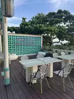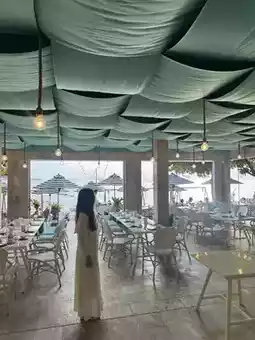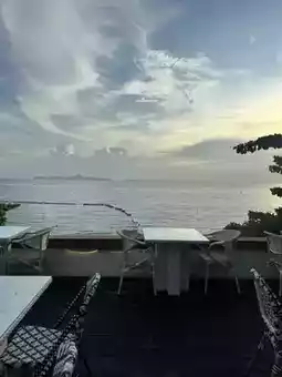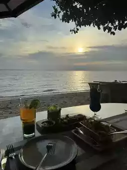 It's a restaurant with a really cool atmosphere, located right in front of the sea! Especially if you come during sunset, you can enjoy a fantastic sunset and a meal together, so it's a place you can't get any happier!!