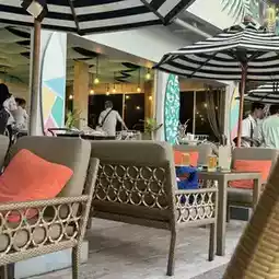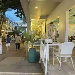 It's a great place to have a meal or just have a cocktail. At night, the live band performance and pretty lights come on, so the atmosphere is really cool!