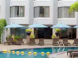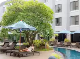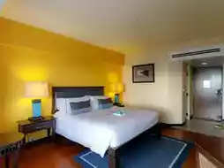 For those who like to swim, the hotel has 2 large swimming pools, a children's pool and playground. There is a Kids Club, fitness center, and Bar & Lounge. It's complete. This time, I stayed in a Deluxe Sea View room. The room was very good. The size was just right. There was a balcony to go out and enjoy the sea view. There was a bathtub in the bathroom. Staying here was so happy.