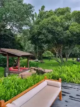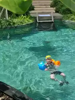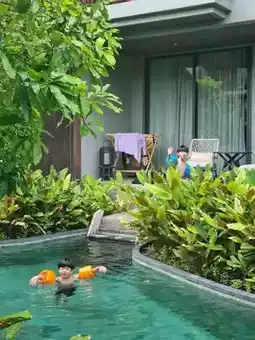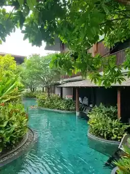 Stepping out from the room onto the terrace, you can dive straight into the refreshing pool💦💦. The area around the pool is filled with beautiful landscaping, allowing you to feel relaxed throughout your time at this Pattaya accommodation. Although the foliage is lush, it is always well-maintained, making it hard to find any leaves in the pool🙂🙂. It was a dream-like stay❤️.