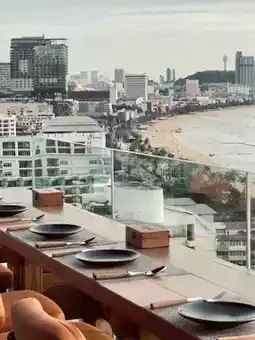 🍸When you go to the sea in Pattaya, why not stop by to eat a meal with a chill atmosphere 🌊 with a view of the Pattaya sea on the rooftop?😍 Watch the sunset, great atmosphere, super romantic💕 Tag your friends, tag your lover, let's change the atmosphere for dinner☺️