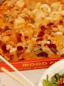 Pizza lovers, don't miss out! "Mood Pizza Pattaya" has a full menu of authentic Italian pizzas with a variety of toppings, such as Margherita, Pepperoni, Hawaiian, Four Cheese, or new toppings like Tom Yum Goong Pizza, Pad Krapow Pizza. Let me tell you, it's really great! Thin and crispy dough, fresh from the oven, fragrant and very delicious. We've come back to eat twice already.