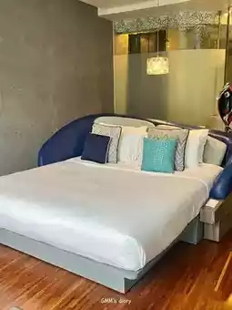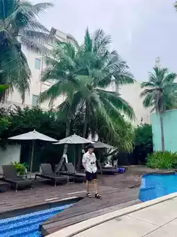 🏨 Barracuda Hotel has a very cool swimming pool, shaped like a fish. The front desk is very good. There are places to sit and relax, beautifully arranged corners. There is a drink at the time, butterfly pea water, very refreshing.