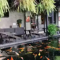 Most importantly, the atmosphere of the shop is very shady. The outdoor area is decorated as a garden and waterfall, giving a refreshing, comfortable atmosphere. Bring a book to read or sit and work in a chill atmosphere. There is a koi pond and a bear chair as a signature corner.