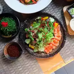 •Salmon sashimi: Thick orange salmon, soft and melts in your mouth, very good