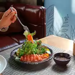 •Salmon salad: Japanese soy sauce salad dressing goes well with colorful vegetables and salmon