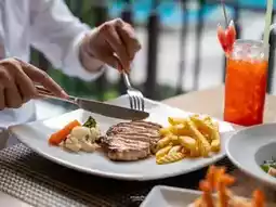 Today, the two of us chose this place as our vacation destination. The room we stayed in today was the North Wing Suite, which is a very large room. There is a balcony to see the sea view and the swimming pool. The room has complete facilities. There is a Jacuzzi to soak in, very convenient. There are also many relaxation areas in the accommodation area. Anyone who loves swimming will definitely love it. The swimming pool is very large and there are 3 swimming pools to swim in.