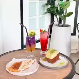 🧋𝐓𝐇𝐘𝐌𝐄 𝐁𝐚𝐤𝐞𝐫𝐲 & 𝐂𝐚𝐟𝐞 𝐙𝐨𝐧𝐞 A cute European-style cafe with a variety of drinks and bakery items and a photo corner.