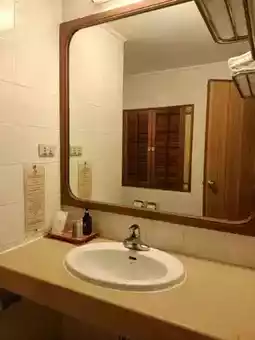 The place is an old, luxurious hotel. The furniture is made of wood, clean, and not dilapidated. The food is delicious. The staff is polite and provides good service.