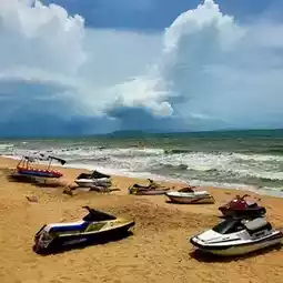 #Seaside trip In the Pattaya area, there are many beautiful beaches. In addition to Pattaya Beach, there is another beach that is popular with tourists and Thais and foreigners, which is "Jomtien Beach". The golden beach tries to reflect the light, so it is attractive and beautiful. The big beach is also popular with Thais because they can sit on a mat and eat family-style with friends and relatives without any formalities. On the beach, there are also canvas tents, som tam shops, fried food vendors, grilled squid vendors, as well as water activities such as jet skiing, paramotoring, or sunbathing. There is also a massage delivery service that comes to the beach. This quiet beach is never deserted by tourists, both Thais and foreigners, especially on weekends because it is easy to drive from Bangkok, taking only 2 hours. #100 ways to travel #Pattaya attractions #wattosann