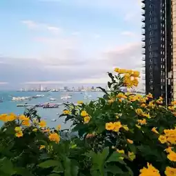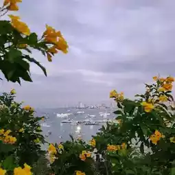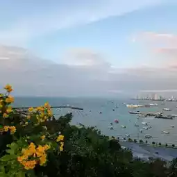 🌅 The evening light is very beautiful. The wind is cool and you can see the view clearly 👍👍👍 This is what they call the Busan of Thailand 💙 There are beautiful flowers and many people come to take pictures. The city viewpoint is actually a viewpoint of Pattaya, which is easy to get to.