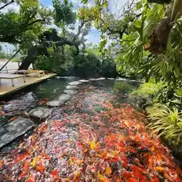 ✅️ If you face the shop, the left side is the restaurant zone. Every seat in the shop is next to the edge of the fish pond. There are fish swimming around for you to enjoy. There is also fish food for sale. The price is 25 baht per bottle.