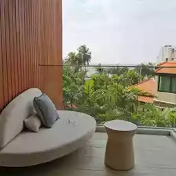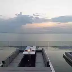 The highlight is the sunset time, where you can enjoy a panoramic sea view and also see the hotel's swimming pool.