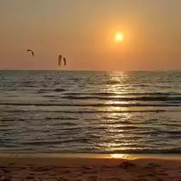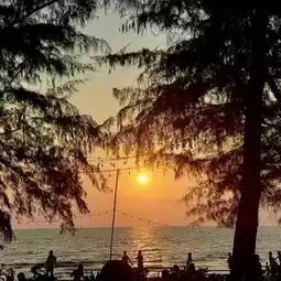 Sunset is a very romantic time. It will be even more beautiful if you can watch the sunset by the sea. I recommend this place, Pattaya Beach, Na Jomtien area, Cave Beach Club area. Come and eat while enjoying the beautiful view. You can walk and watch the sunset, walk along the long beach. Sit and watch the orange light fill the sky and the light reflecting on the water. It's really beautiful. I want you to come and see it.