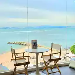 You can see the beautiful view of the Sanctuary of Truth and there is also a private beach with a great atmosphere.