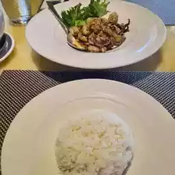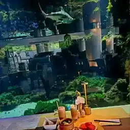 #Thai restaurant Set menu of Thai food with authentic Thai flavors. I didn't think eating in a hotel would be this delicious. The set menu includes Tom Yum Talay, sour, salty, spicy, complete. Spicy Isan-style chicken salad, fried squid with fresh garlic, no fishy smell and not tough. Sweet and sour fried sea bass is delicious, children can eat. Tom Kha Gai is rich but not spicy, authentic central Thai flavor. But what is indispensable is hot steamed rice, good quality jasmine rice. If you eat Thai food without jasmine rice, it's like something is missing. Dessert is sticky rice with mango and ice cream. The amount of food can be eaten by 4 or more people. The staff is very good. Delivered to the address in a 5-star hotel. Eat while watching fish swimming. Most importantly, there are 2 sharks. And there is also care and service. It can be said that it is done well. The restaurant is located in the lobby of The Sanctuary Resort Pattaya. #100 ways to travel #wattosann