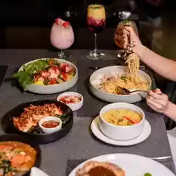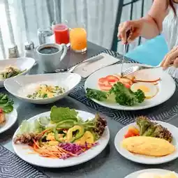 There is a Molten restaurant that serves All Day Dining. There are many menus to choose from. The food is delicious and the price is good. For those who want to have a drink and chill, you can come to M Lounge next to the swimming pool on the 1st floor. It's another way to chill.