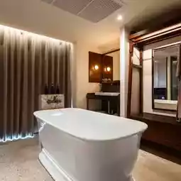 and check out at that time the next day. Breakfast is served until 4 pm, so you can get a full rest. The hotel is beautifully decorated, with a little bit of history to tell. The rooms are spacious, with complete amenities. The rooms are beautifully decorated, with a comfortable bed, a bathtub in the room, a spacious area, and a sofa corner. The amenities are also complete. ✨🛌