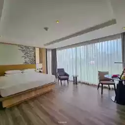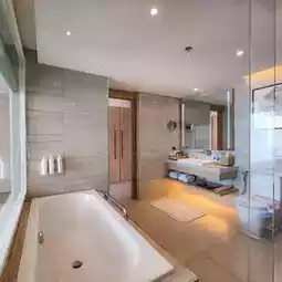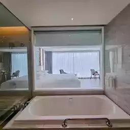 The room that Wan stayed in was a deluxe room, 38 sq m., with a large bathroom with separate bathtub and shower, and a large window separating the bathroom and bedroom.