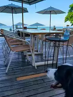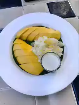 Importantly, this place is pet friendly, you can bring your dog with you. We ordered sticky rice with mango to eat while enjoying the view. The mango was bland and tasteless, maybe because it wasn't the mango season, but never mind. The view in front of us was so beautiful that we forgot all about the mango. It's not just people who look at it, dogs also look at it.