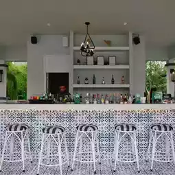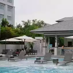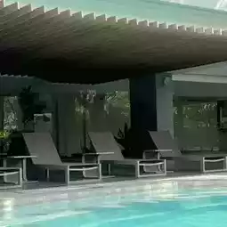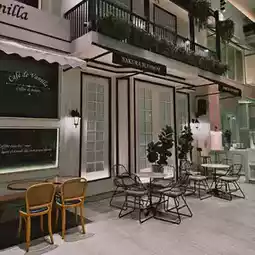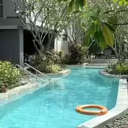 Cafe, spa massage and swimming pool area divided into 2 zones