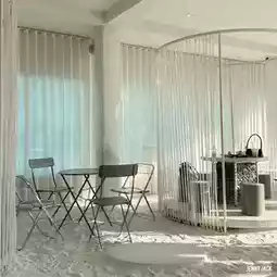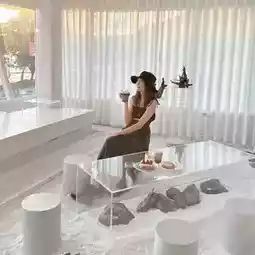 The cafe is on the 2nd floor. When we entered, we were amazed. The cafe is in a minimalist style, with a black and white theme. The decorations are decorated with white sand and rocks that are well arranged. There are wide windows that overlook the sea on both sides. There are many seating areas. You can take pictures from any angle. Especially if you come in the evening, the light is beautiful. The sunset shines into the interior. And I would like to compliment the staff in the shop. They are friendly and provide good service. 🫶🏻