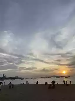 ⛅️☀️I like this beach because the view is very beautiful with many buildings, mountains, and boats. There are also paramotors flying all the time in the sky. It is very beautiful.
